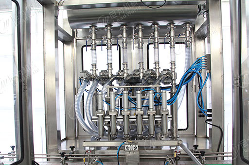 尼為的濃醬灌裝機料箱設(shè)電加熱層、保溫層,并裝有物料攪拌機構(gòu),通過加熱可以使?jié)忉u產(chǎn)品保持較好的流動性,灌裝更加輕松方便,即使醬內(nèi)含有微小花生碎也可以順利灌裝。