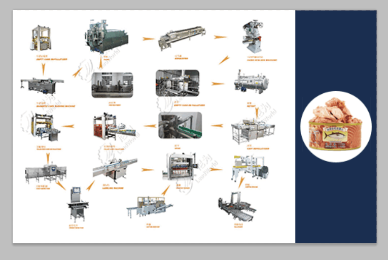 尼為機械還可為您提供其他魚類(黃花魚、帶魚、鯪魚)罐頭生產(chǎn)線、肉罐頭生產(chǎn)線、鮮切蔬果生產(chǎn)線以及灌裝生產(chǎn)線等設備及廠房規(guī)劃設計。歡迎咨詢!