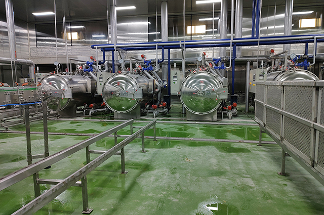 殺菌:在制作午餐肉罐頭時(shí),使用殺菌釜進(jìn)行高溫殺菌是確保產(chǎn)品安全性和延長(zhǎng)保質(zhì)期的重要步驟。高溫殺菌可以有效地殺滅細(xì)菌、病毒和其他微生物,防止罐頭中的食品腐敗和變質(zhì)。殺菌過程對(duì)于確保產(chǎn)品的保質(zhì)期至關(guān)重要。