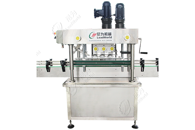 灌裝完成后就是旋蓋封口,尼為自動上蓋旋蓋機采用直線式進瓶、自動落蓋的方法,可連續(xù)上蓋、旋蓋,提高了上蓋速度,適合大產(chǎn)量生產(chǎn),機器調(diào)節(jié)也很方便。